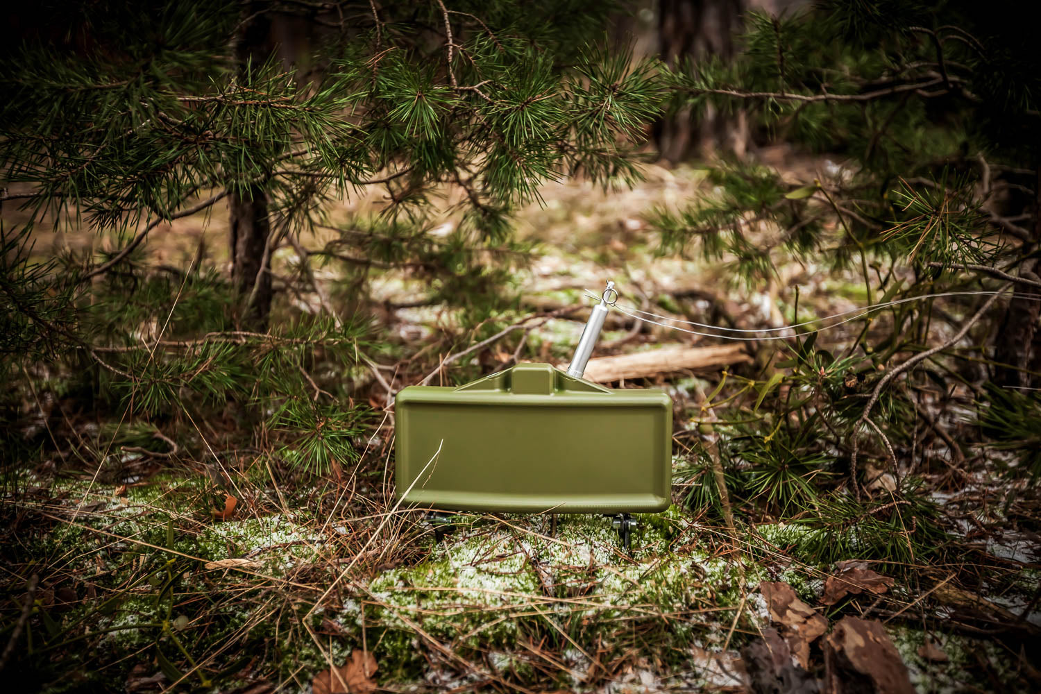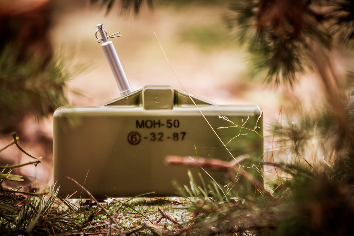 Inerte Replik der russischen, gerichteten AP-Mine MON-50. Die MON-50 kommt mit Ständern zum Aufstellen der Mine. Des Weiteren sind die zwei Zünderschächte zum Aufnehmen von bspw. MUV-Serie oder NM Zündern mit eingebracht in die Mine. Die Replik ist aus PA und Stahlblech gefertigt.