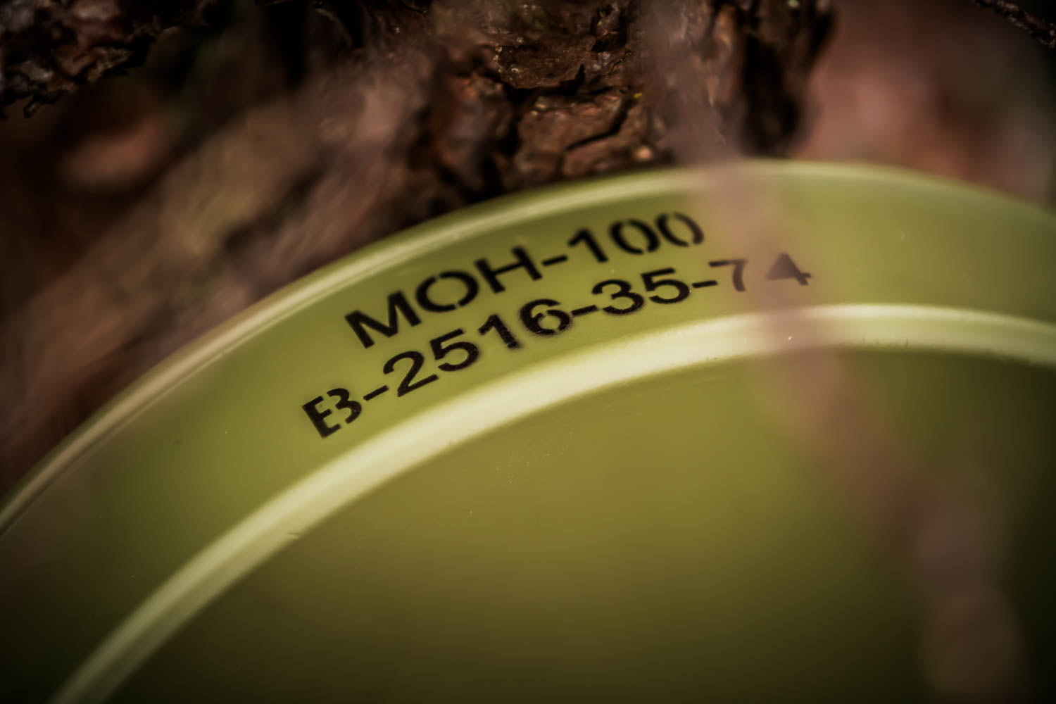 Inert replica of the Russian, directional AP mine MON-100. The MON-100 comes with a bracket for securing or setting up the mine. Furthermore, the fuse shaft for accommodating MUV series or NM fuses, for example, is integrated into the mine and can be screwed in. The replica is made of PA and sheet steel.