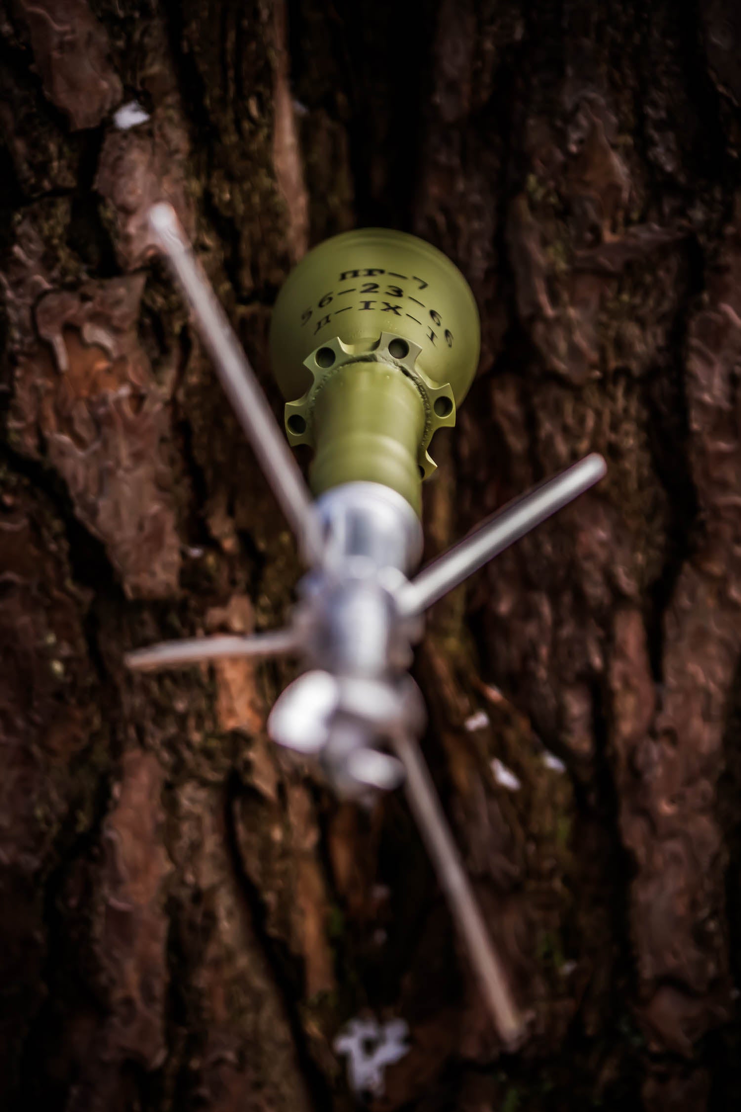 Inert replica of the Russian anti-tank handgun PG-7. In this configuration, the PG is equipped with a rocket motor, tail unit (fired) and fuse. The transport cap can be removed with the safety clip. The PG-7 is equipped with the AND function (Arming-Neutralization-Disarming), see PG-7-1E. These functions are reversible and can be repeated countless times during training. Material: PA, aluminum and sheet steel