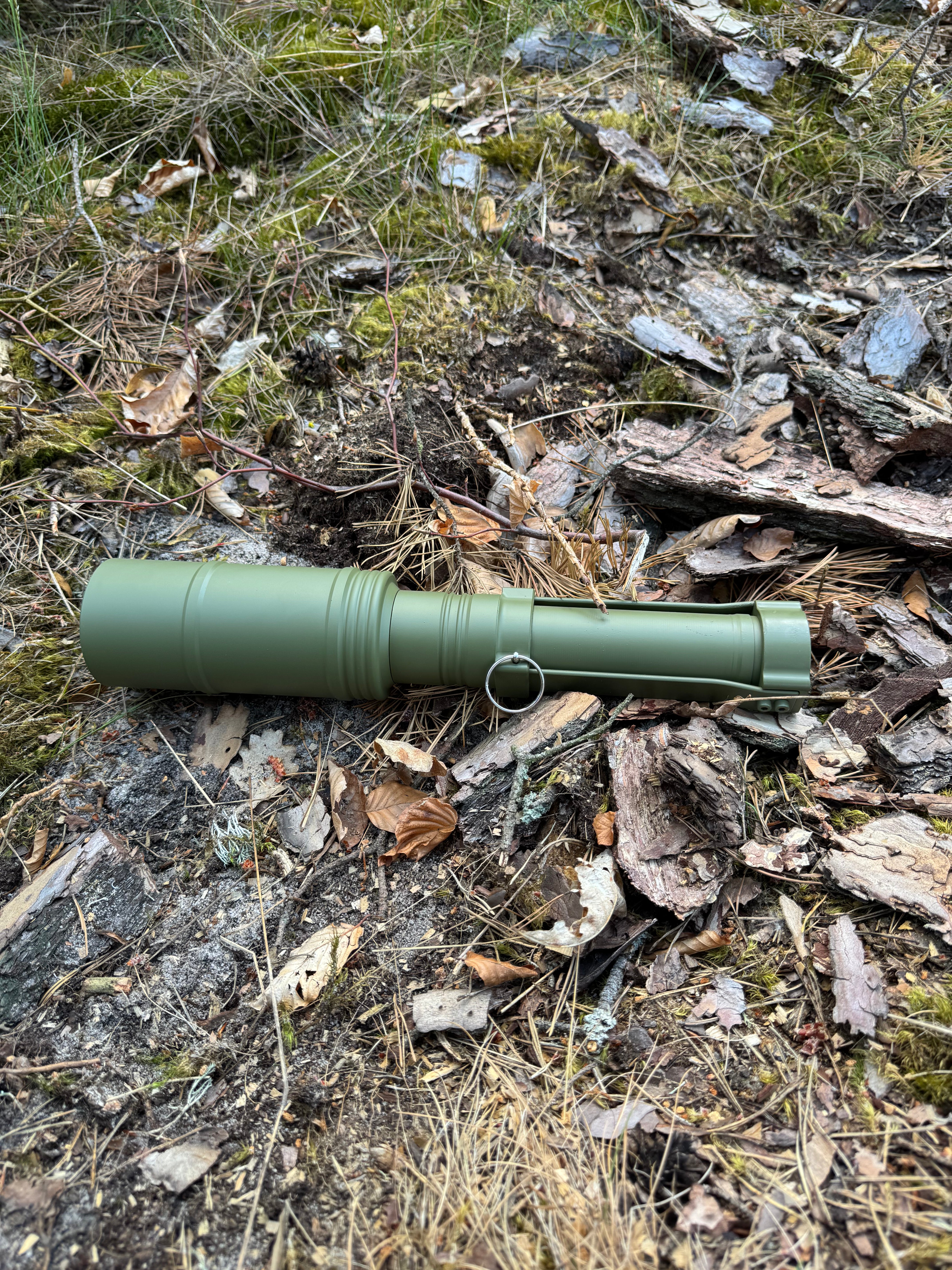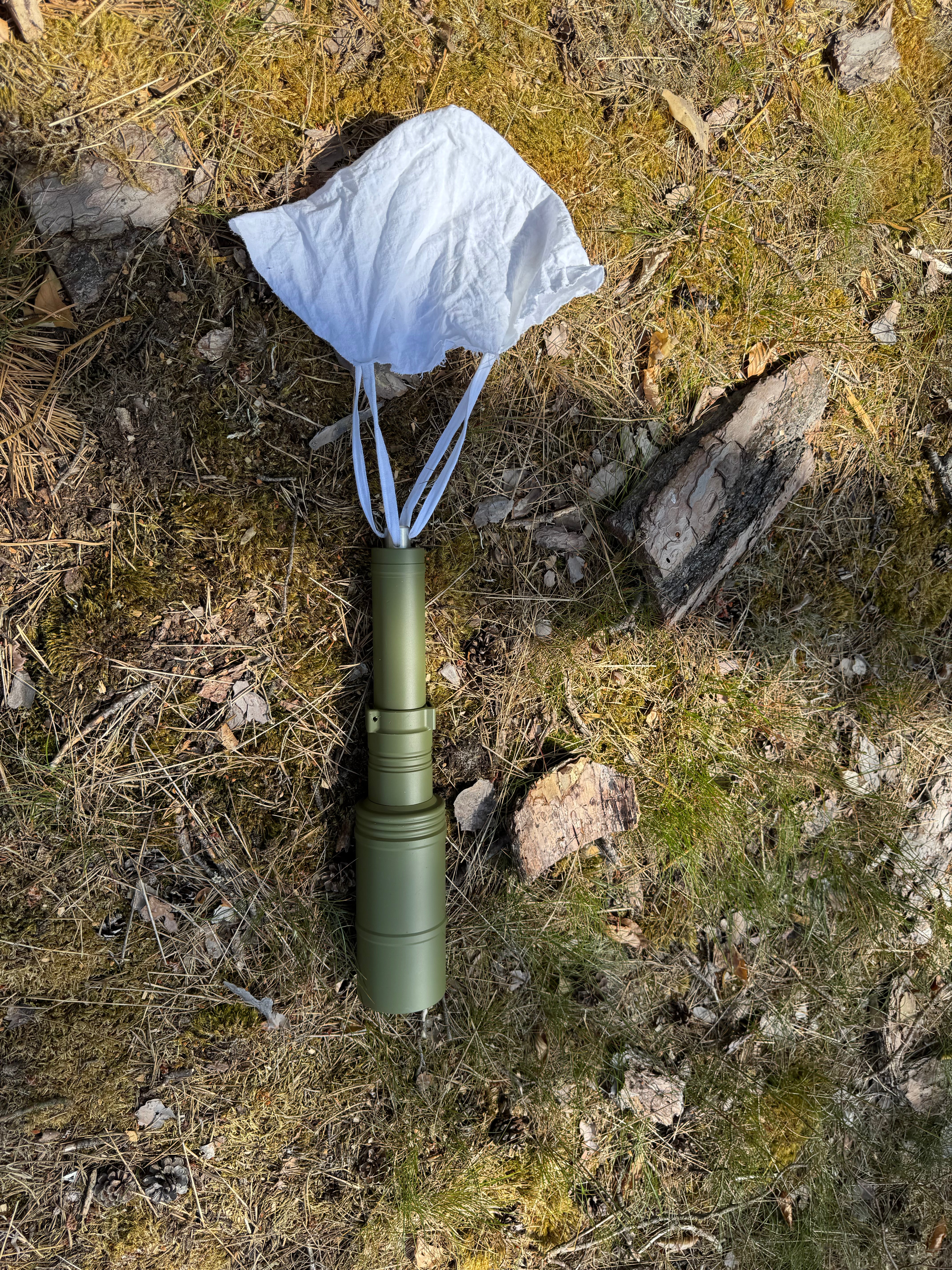 Inert replica of the Russian HEAT hand grenade RKG-3. It comes with Safety Pin as well as the bespoke strap-like lever that frees the parachute in the handle. The parachute is made of parachute or thin sailing fabric and is spanned to 4 foldable legs. That process can be reversed for a maximum of training drills. The RKG is made of PA, Steel and Aluminum .